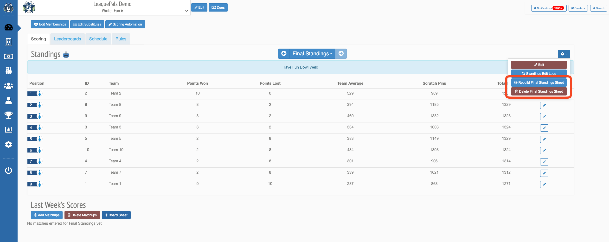 Final Standings Sheets allow you to lock in an official snapshot of your league or tournament results at the conclusion of play. This is especially useful for record-keeping, payouts, and sharing finalized results.